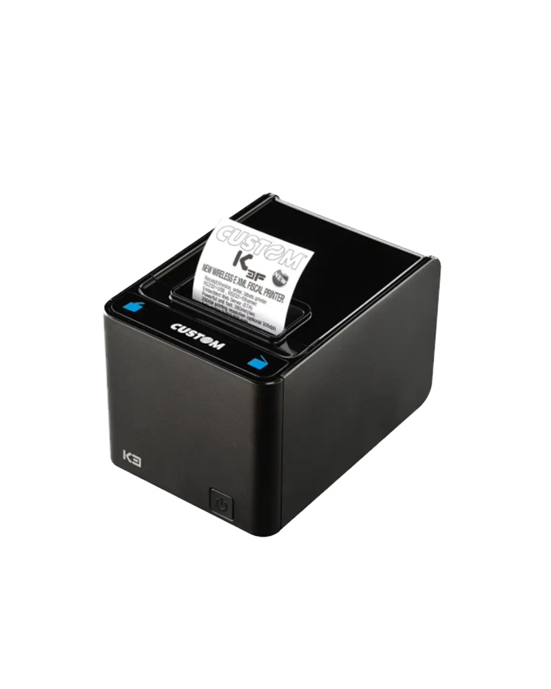 K3 F este inceputul celei de a treia generatie de produse fiscale Custom. Cu o tehnologie din ce in ce mai rafinata si specializata, imprimanta K3 F, pe langa imbunatatirea ulterioara a performantelor in ceea ce priveste viteza si fiabilitatea, deschide portile comunicarii mobile gratie interfetei Ethernet din dotarea standard, amandoua gandite pentru utilizarea acestui produs prin aplicatii dezvoltate pentru vanzare mobila sau cloud. Nu mai sunt limite tehnologice cu K3 F in ceea ce priveste gestionarea intr-o retea locala sau geografica si este usor accesibila de pe orice dispozitiv, cum ar fi tableta sau smartphone care au acces la retea.
